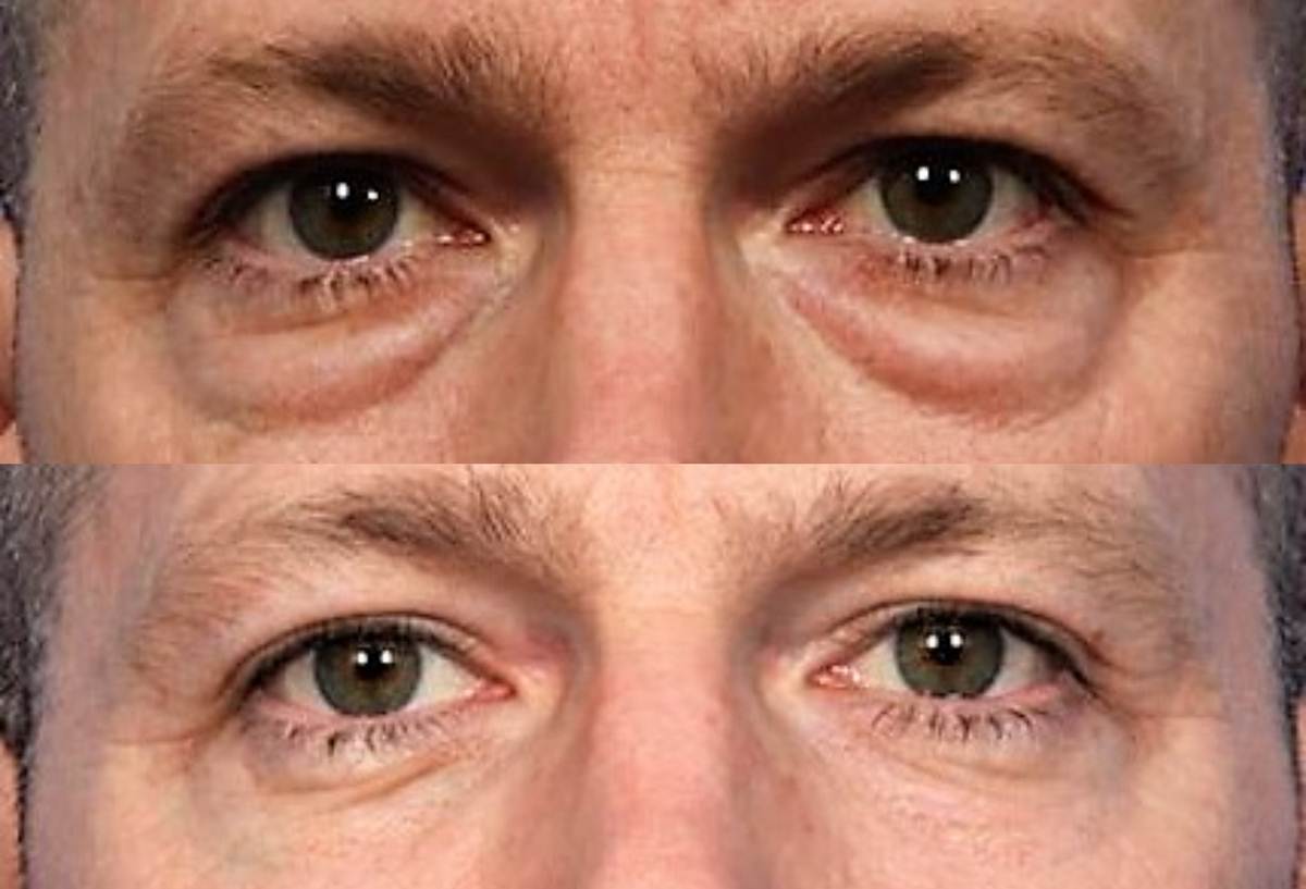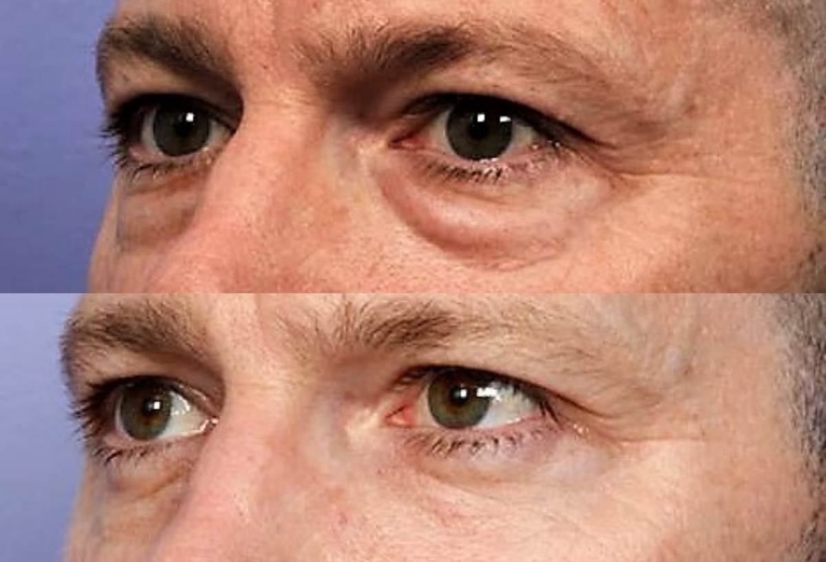 - Το πλεονάζον λίπος, που έχει εγκατασταθεί στην περιοχή γύρω από τα μάτια και εμφανίζεται σαν πρήξιμο.