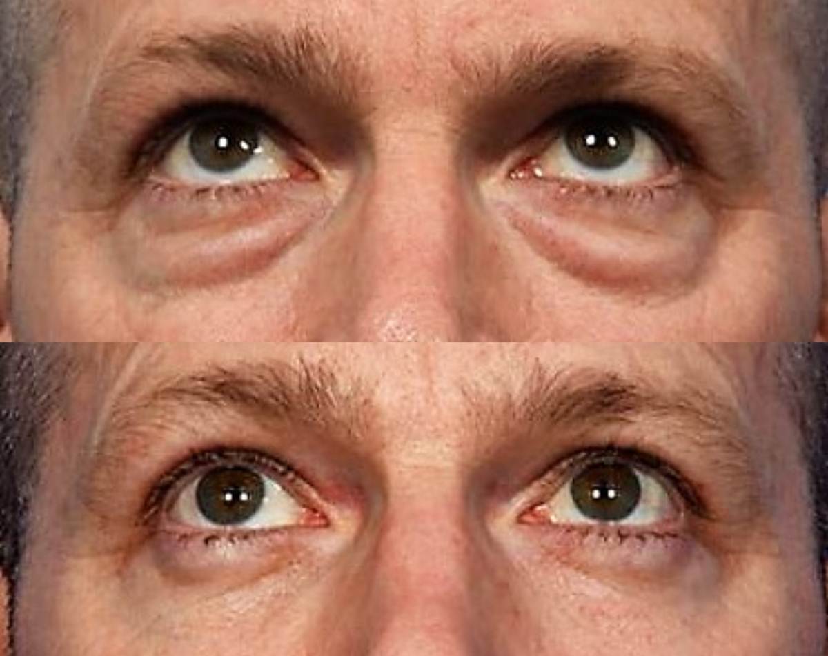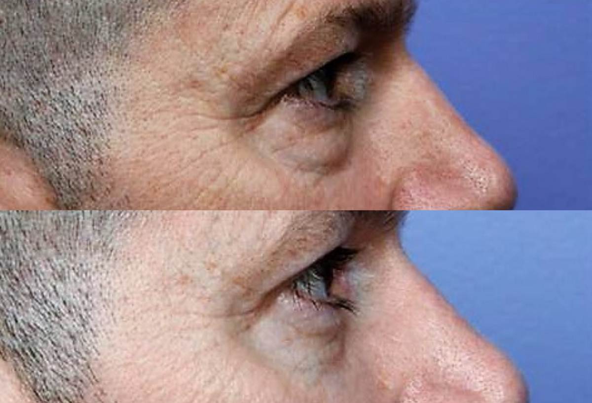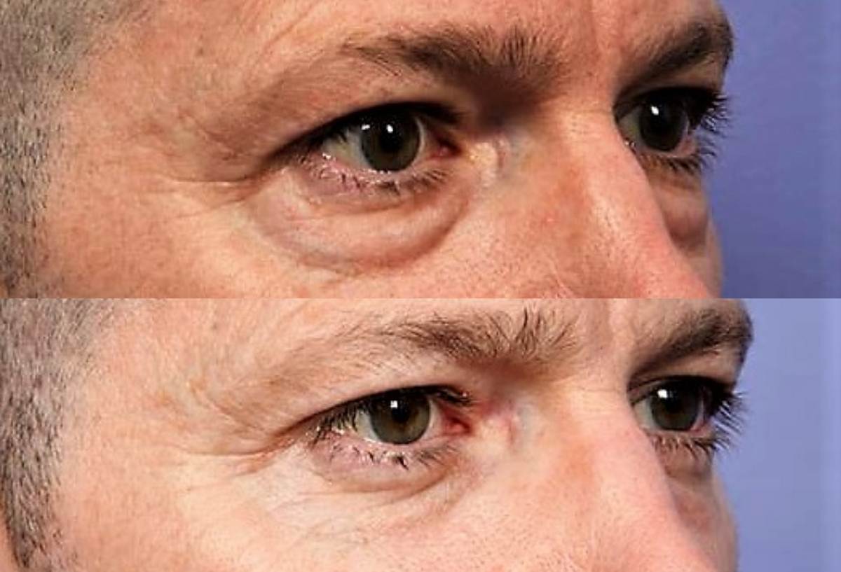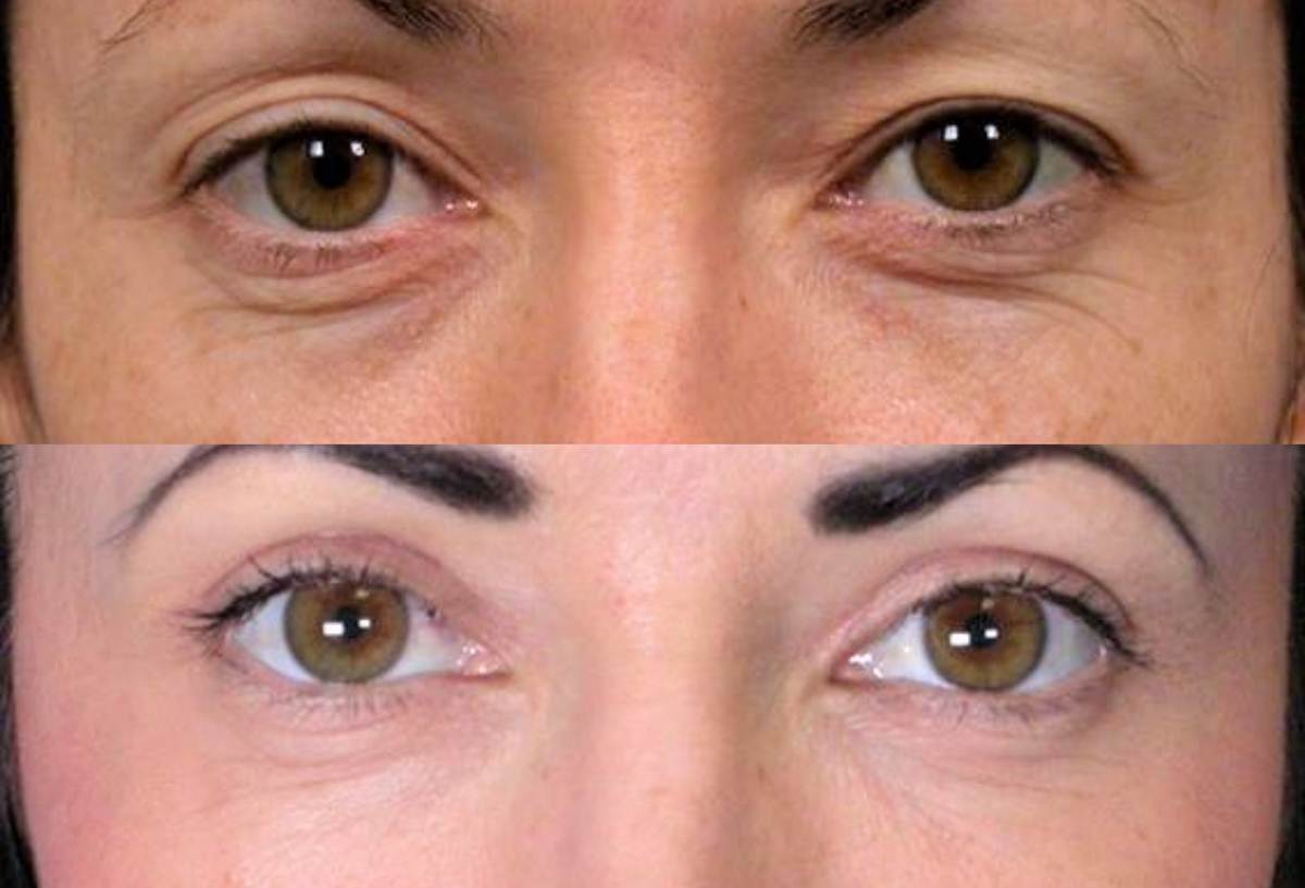 - Την περίσσεια του δέρματος και τις λεπτές ρυτίδες των κάτω βλεφάρων.
